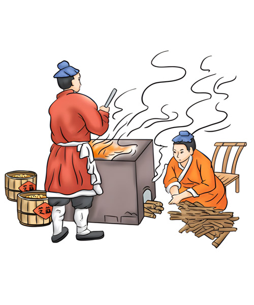 • 漂洗后的芝麻,以鐵鍋碳火慢炒至香味溢出。其中炒芝麻的手法、火候及加料工藝等,都以獨特的秘訣形式由師徒間代代傳承。